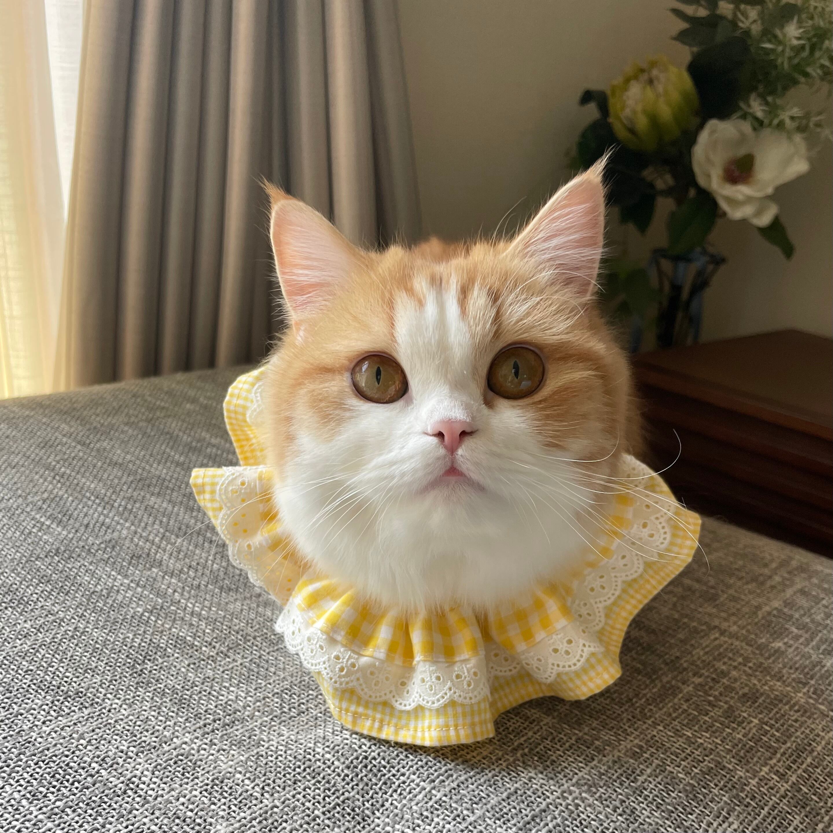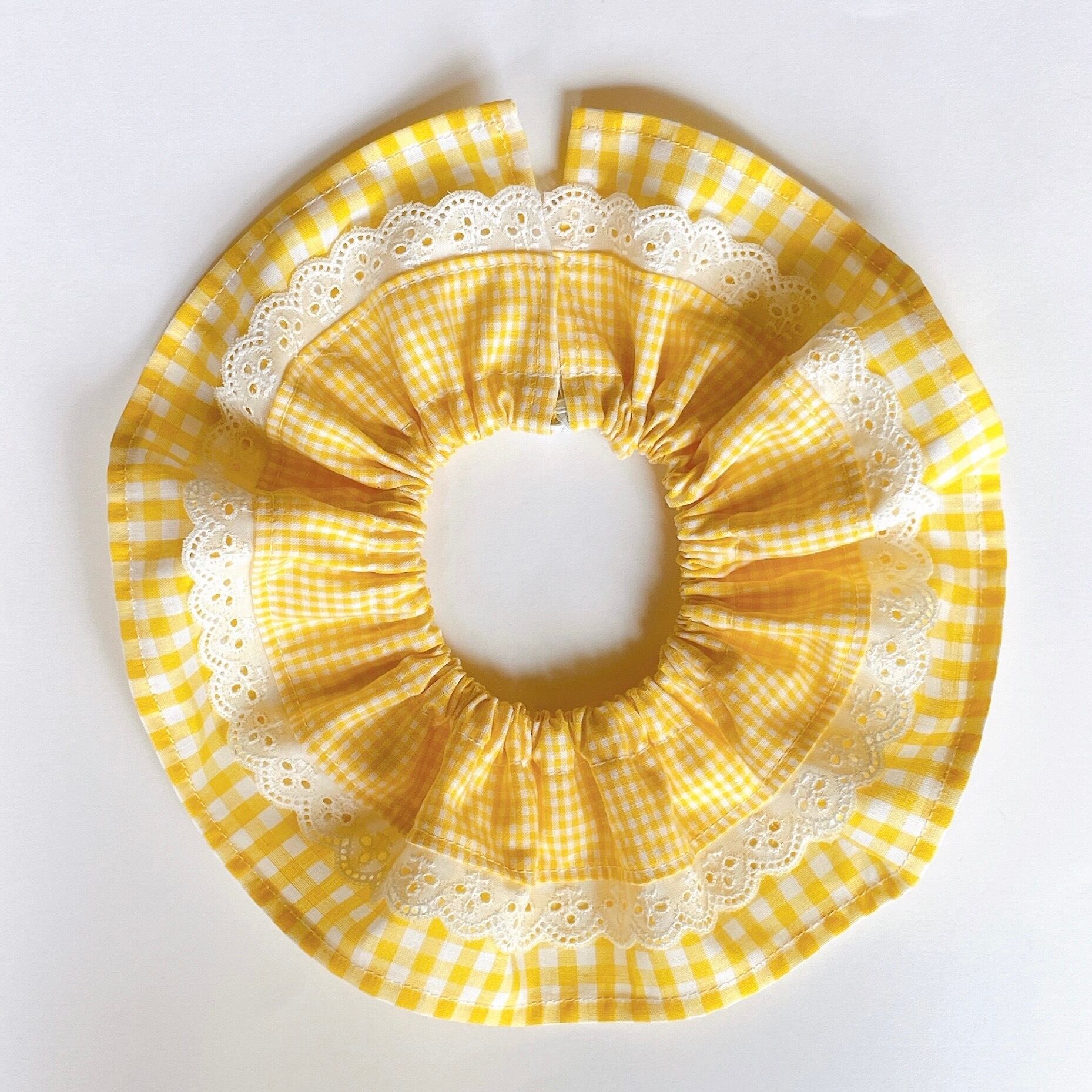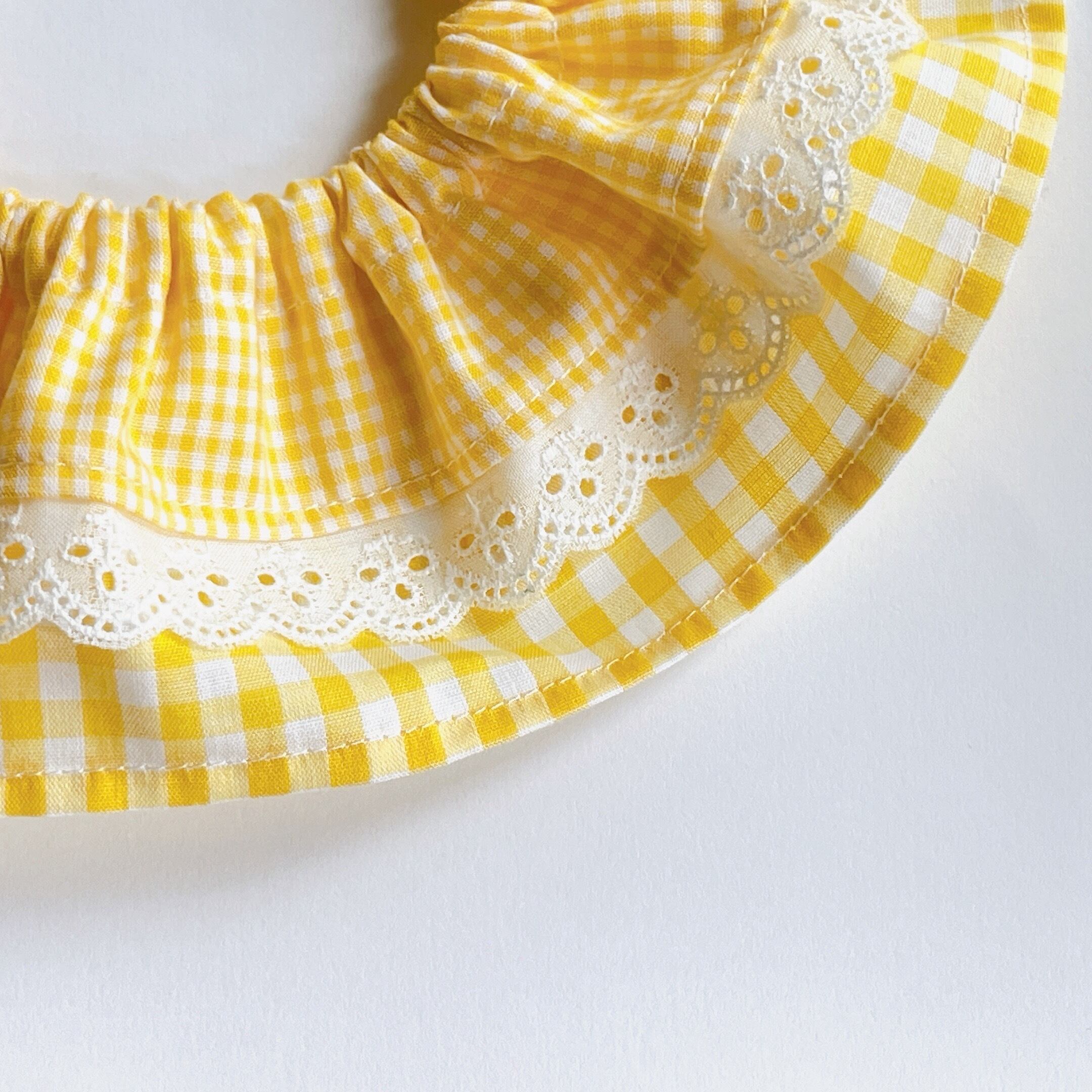 ギンガムチェック レイヤード 猫用スタイ イエロー
