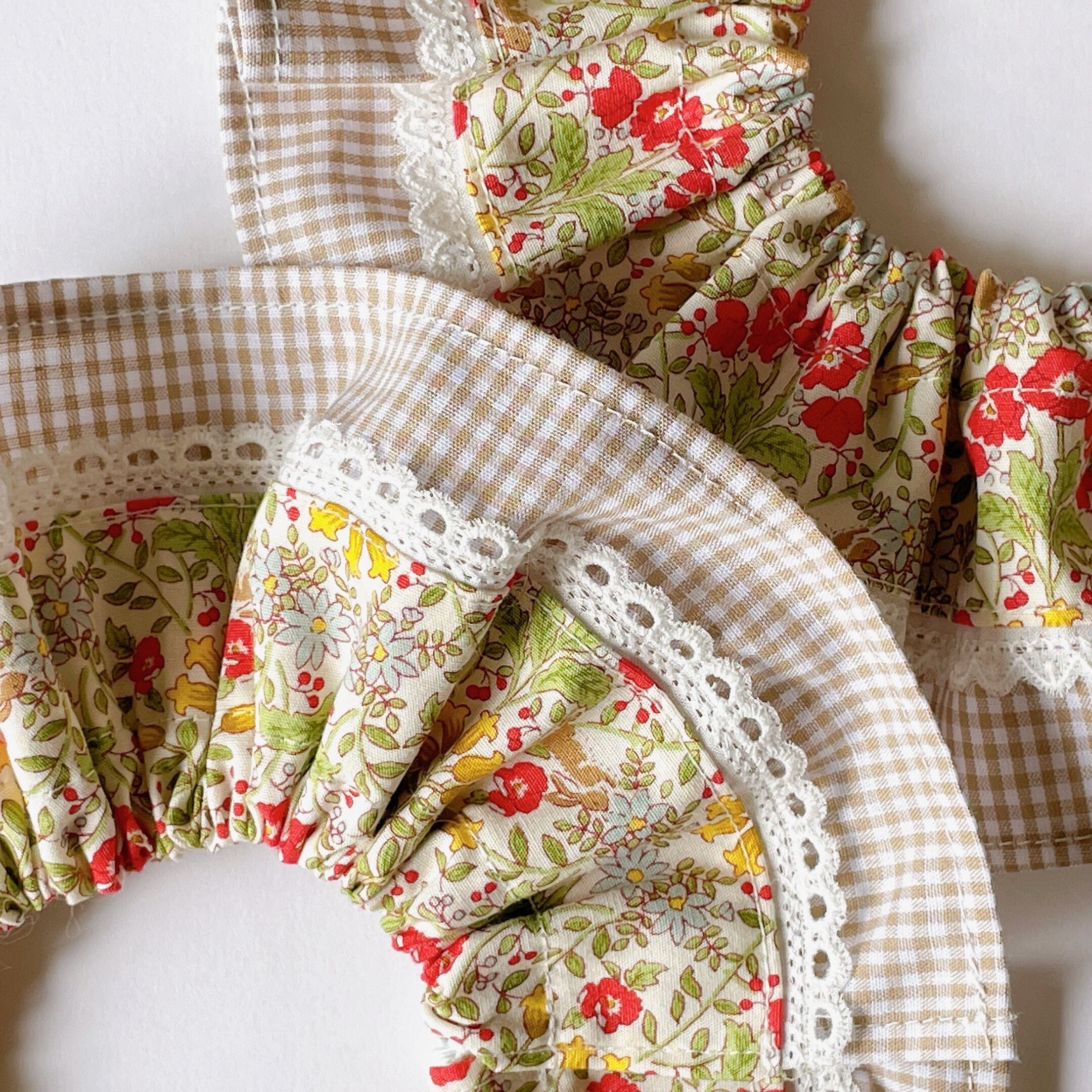 花柄 × チェック レイヤード 猫用スタイ レース1