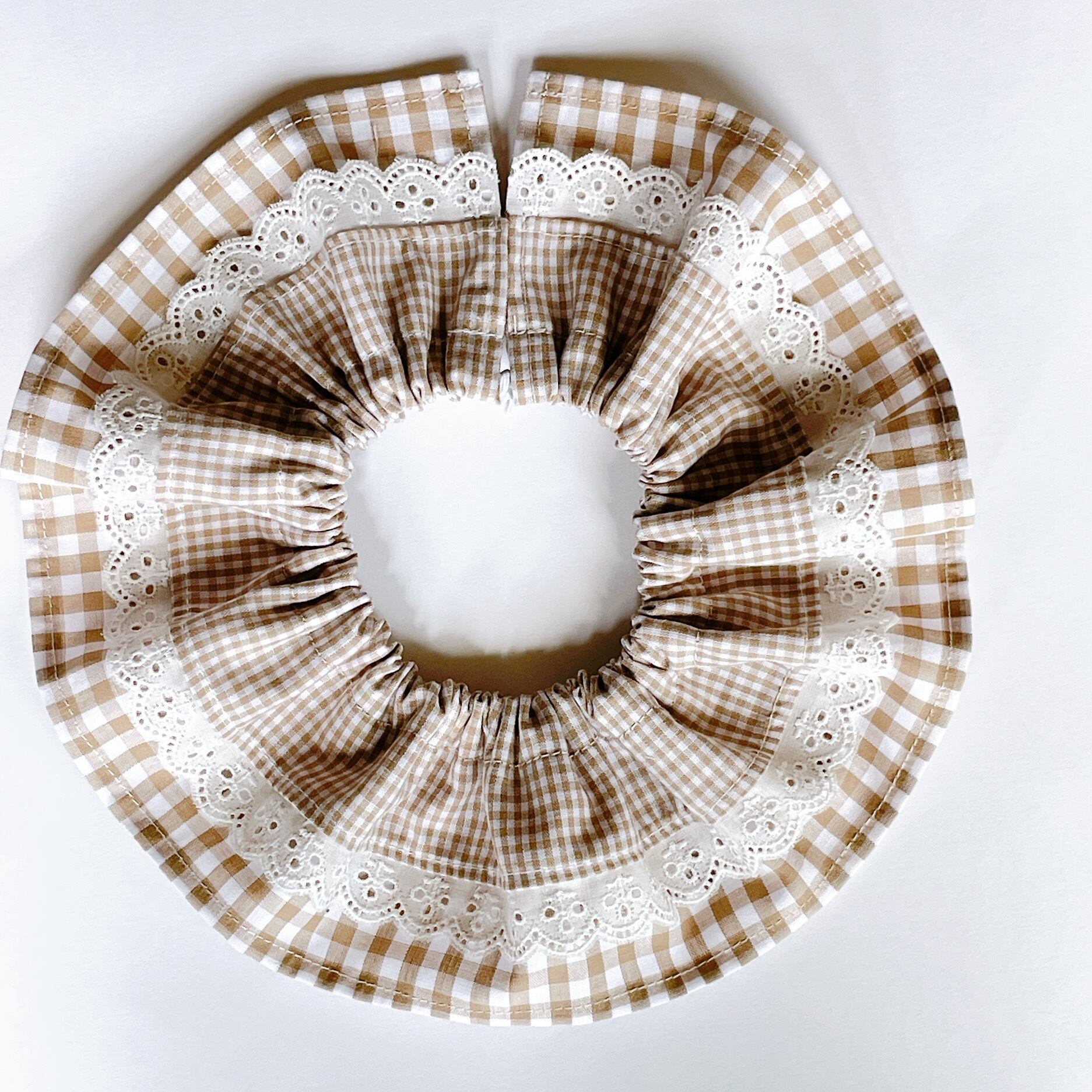 ギンガムチェック レイヤード 猫用スタイ ベージュ1