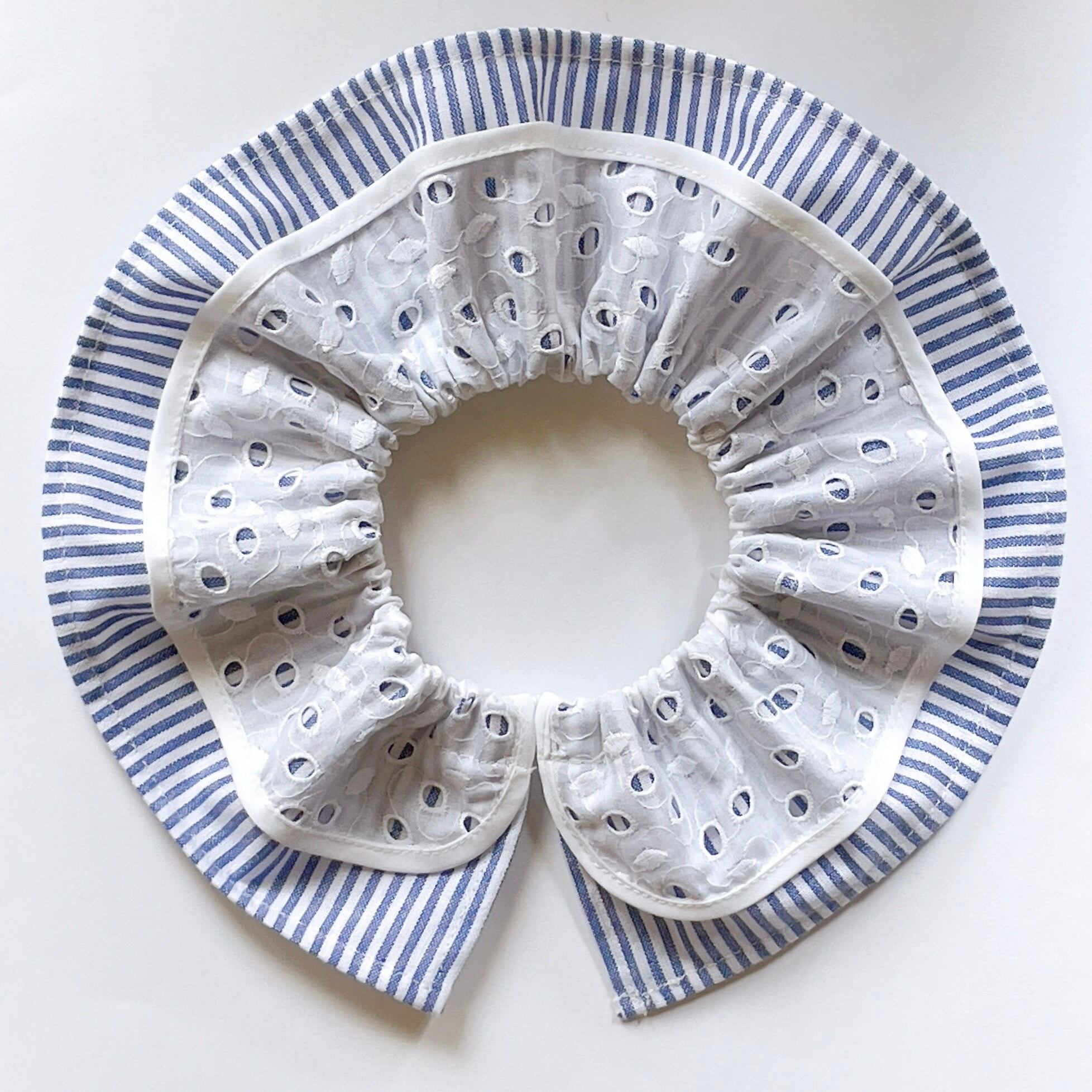 ストライプ×丸襟カットワークレース レイヤード 猫用スタイ