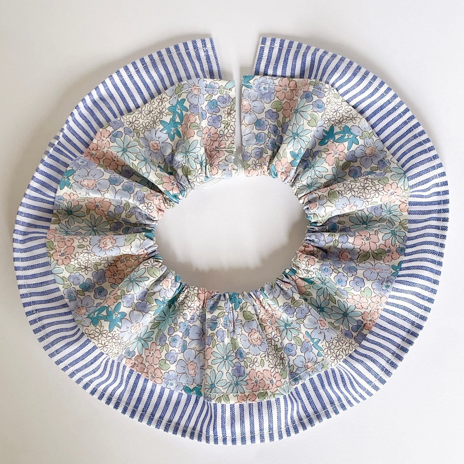 小花×ストライプ レイヤード 猫用スタイ ブルー