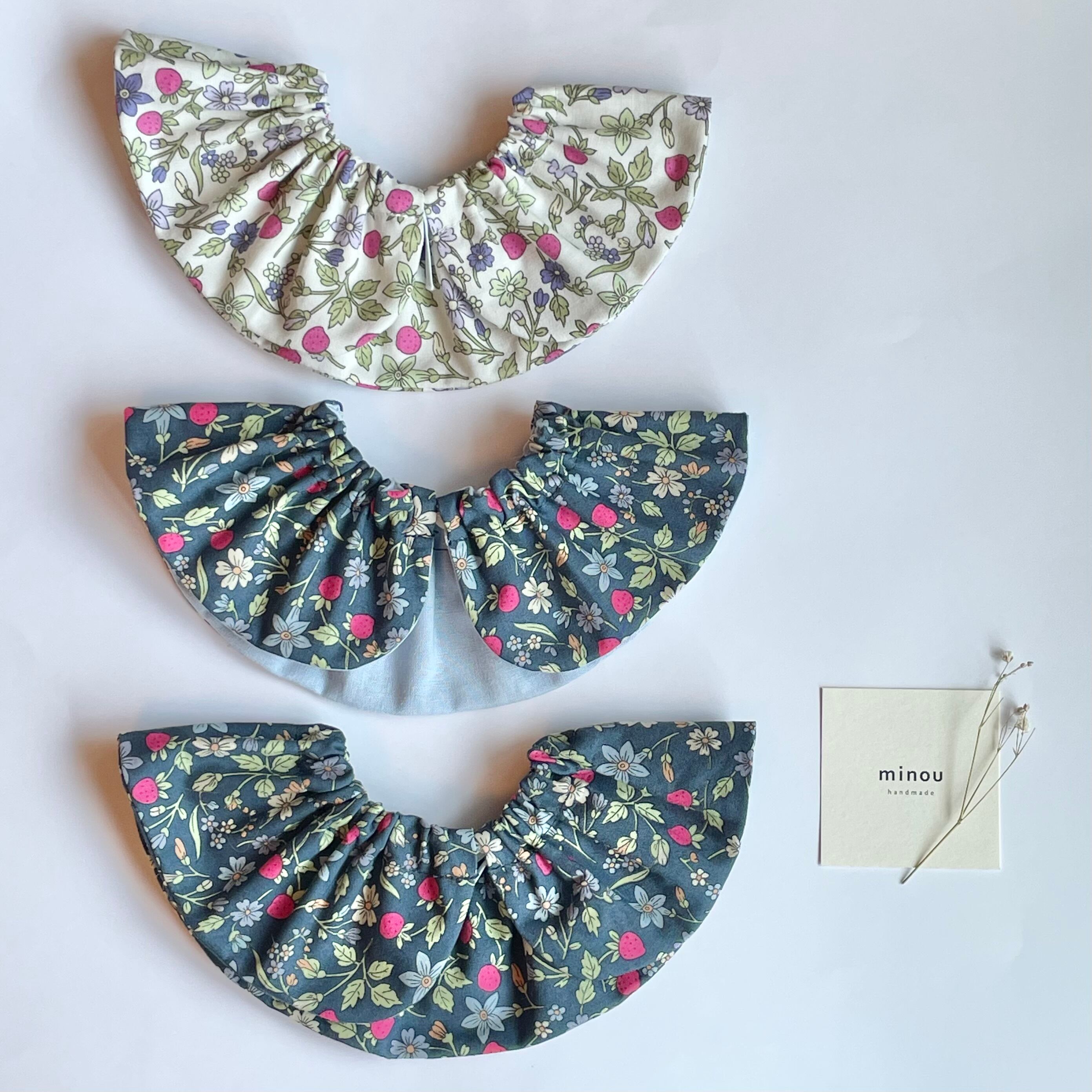 いちごと花 ネイビー2 丸襟 猫用スタイ