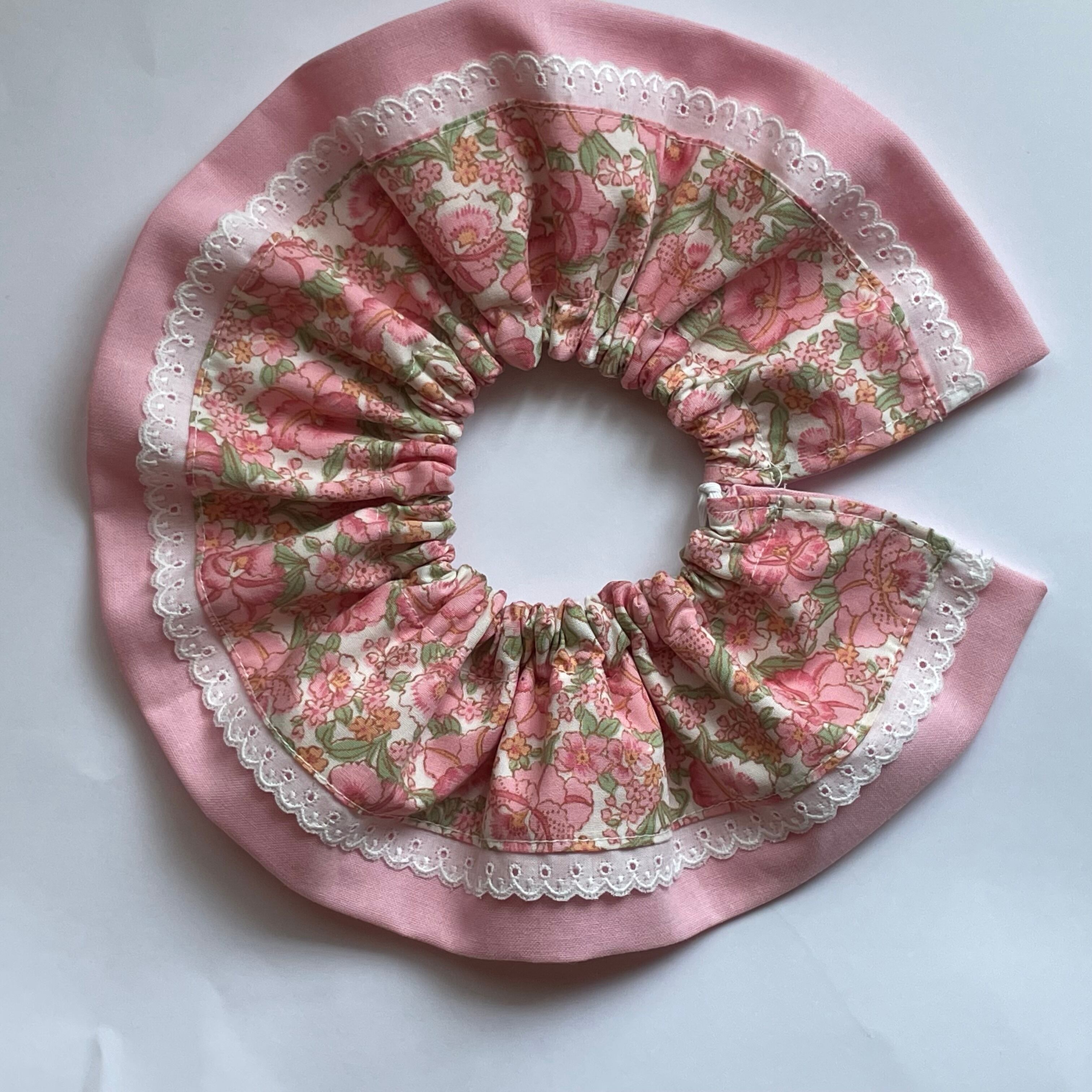 ベビーピンク×花柄 レイヤード 猫用スタイ
