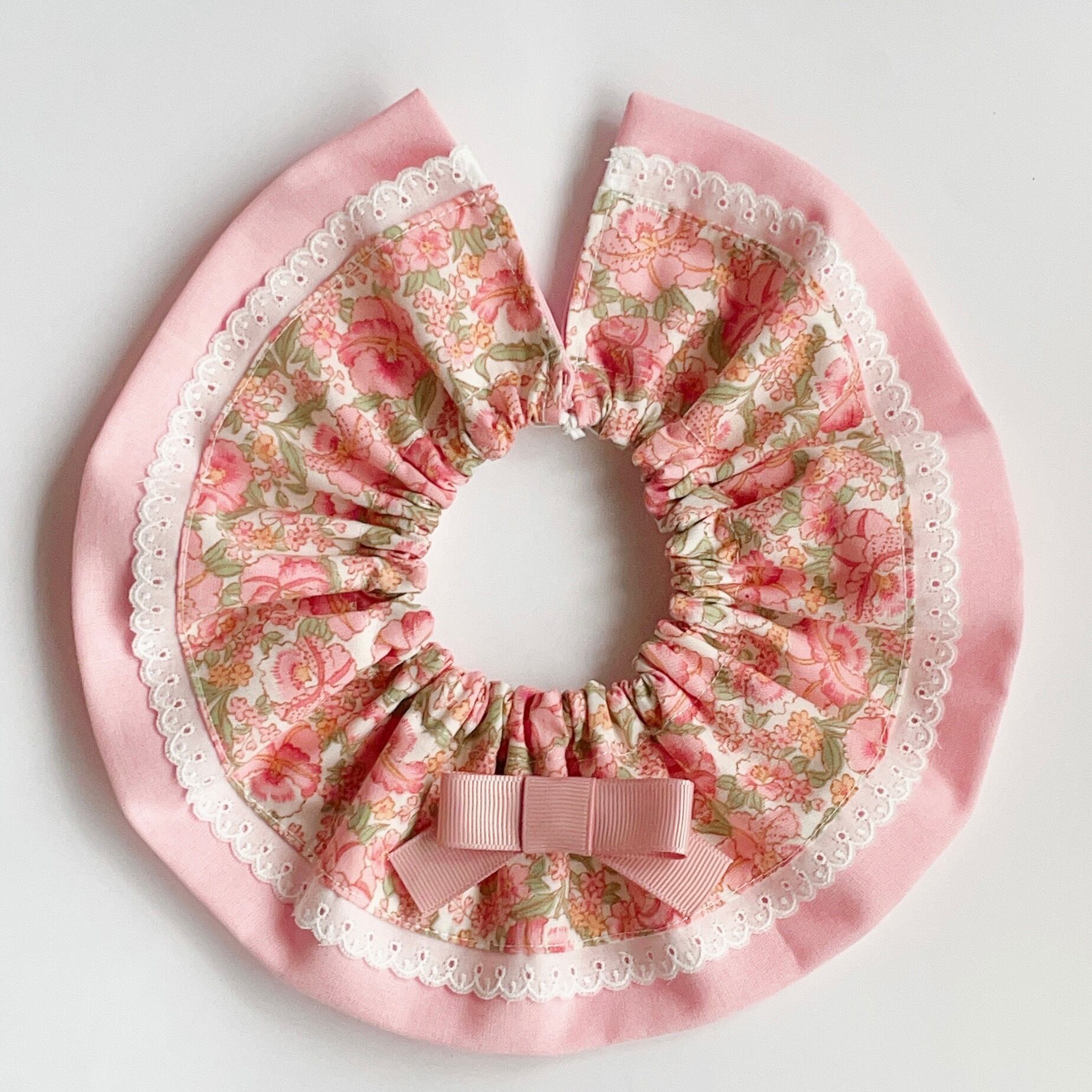 花×レース×ピンク レイヤード 猫用スタイ 少し小さめ